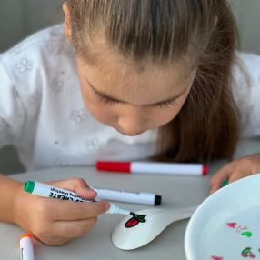 This kit changes that. Kids use special markers to draw on a spoon… then dip it into water and watch their artwork lift off and float. It’s like a science experiment, art project, and magic trick all in one.